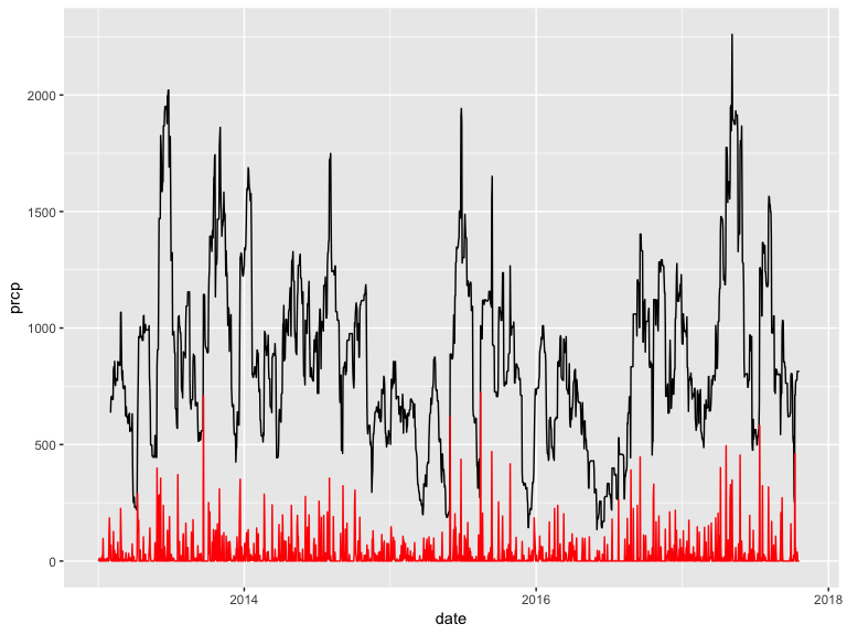 mutate(prcp.30 = rollsum(x = prcp, 30, align = "right", fill = NA))